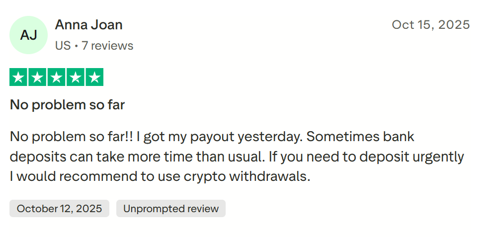 В переводе на русский язык этот отзыв означает, что пользователь остался доволен скоростью и надёжностью выплат. Подобные комментарии формируют общее доверие к платформе и снижают уровень настороженности у новых клиентов.
